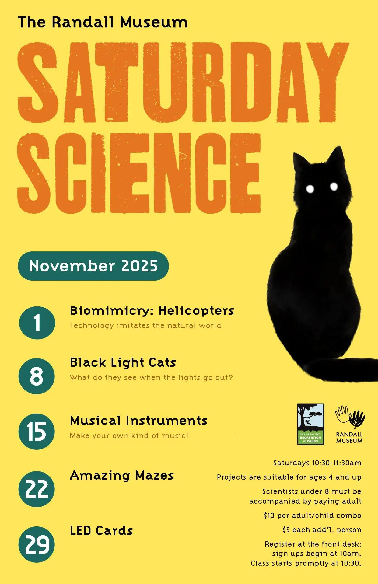 On November 29, the Randall Museum will host a Saturday drop-in science workshop for families from 10:30 a.m. to 11:30 a.m., featuring fun and engaging topics such as: