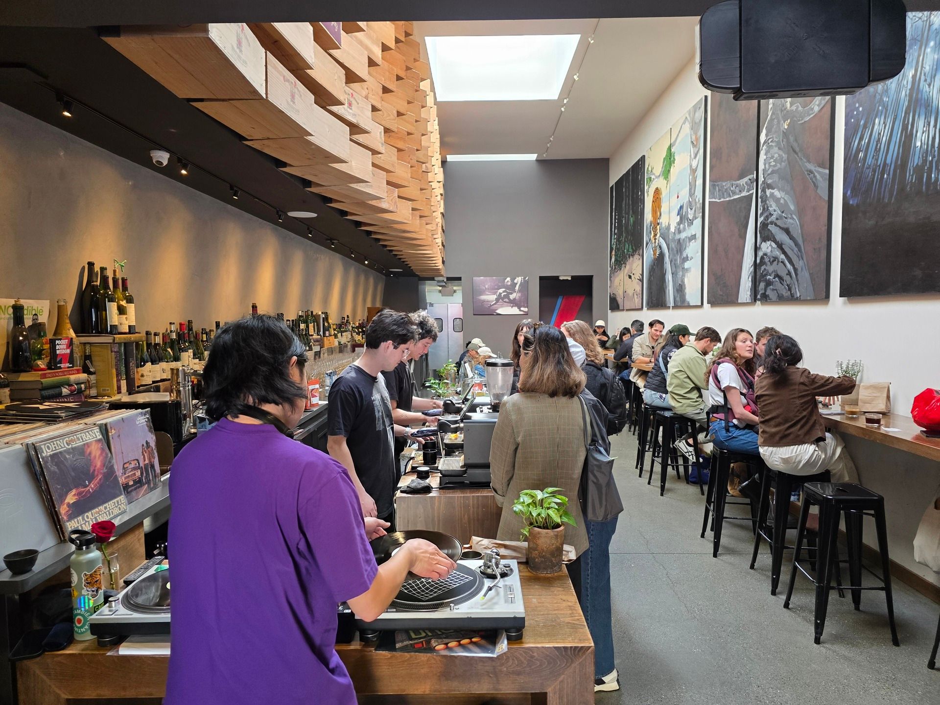 HI NRG, the Clement Street coffee pop-up in the High Treason wine bar space, had DJ Alex M spinning on Sunday from 9 a.m. to 2 p.m. You can find a SoundCloud mix here for a taste of the music. We made our way through a buzzing crowd at Clement Street Farmers Market to check out the set and grab iced coffees. HI NRG continues to draw long lines of devoted customers, attracted to their sceney atmosphere and consistently excellent drinks. For a deeper dive into their rotating coffee menu, cupping events, and more, check out their Substack.