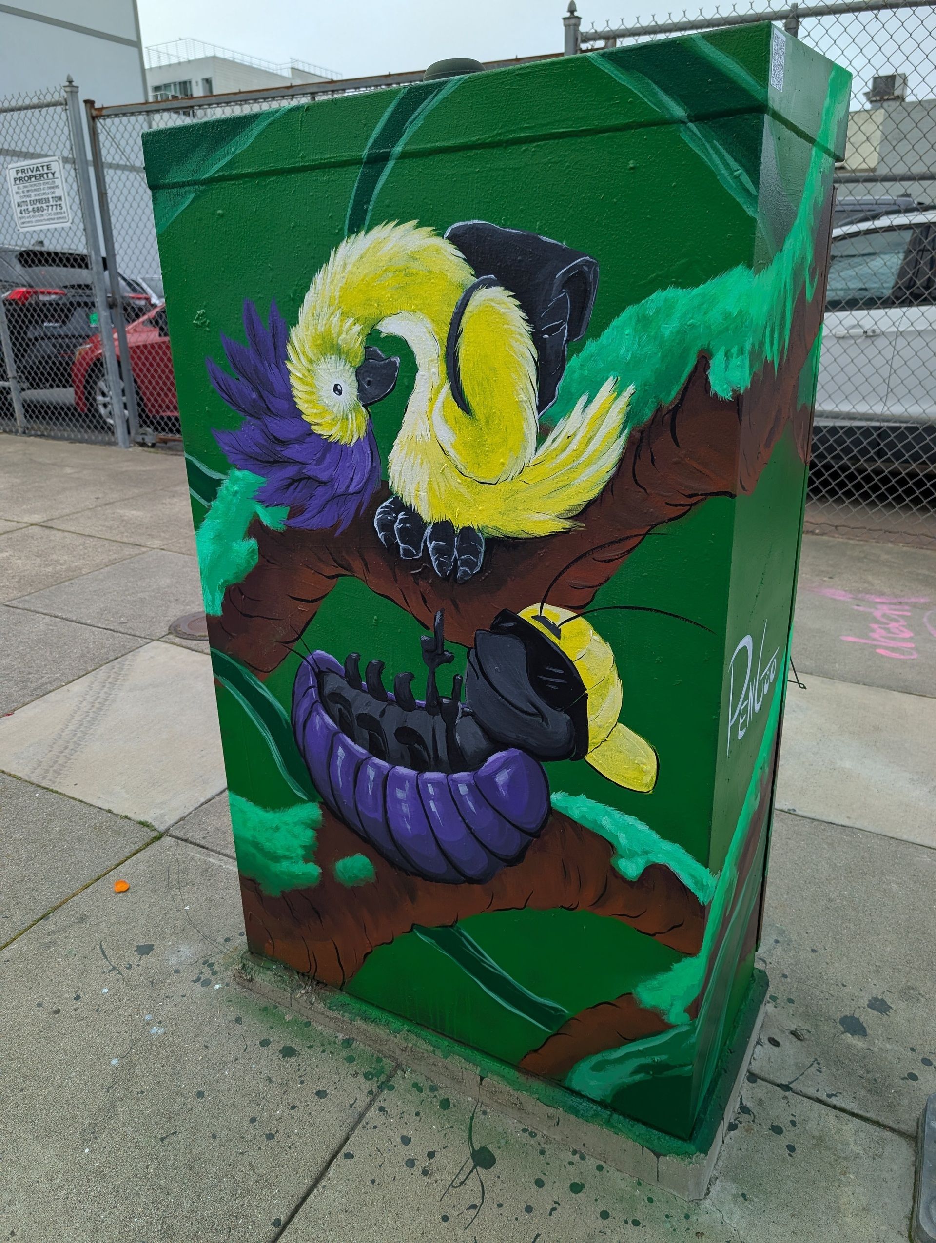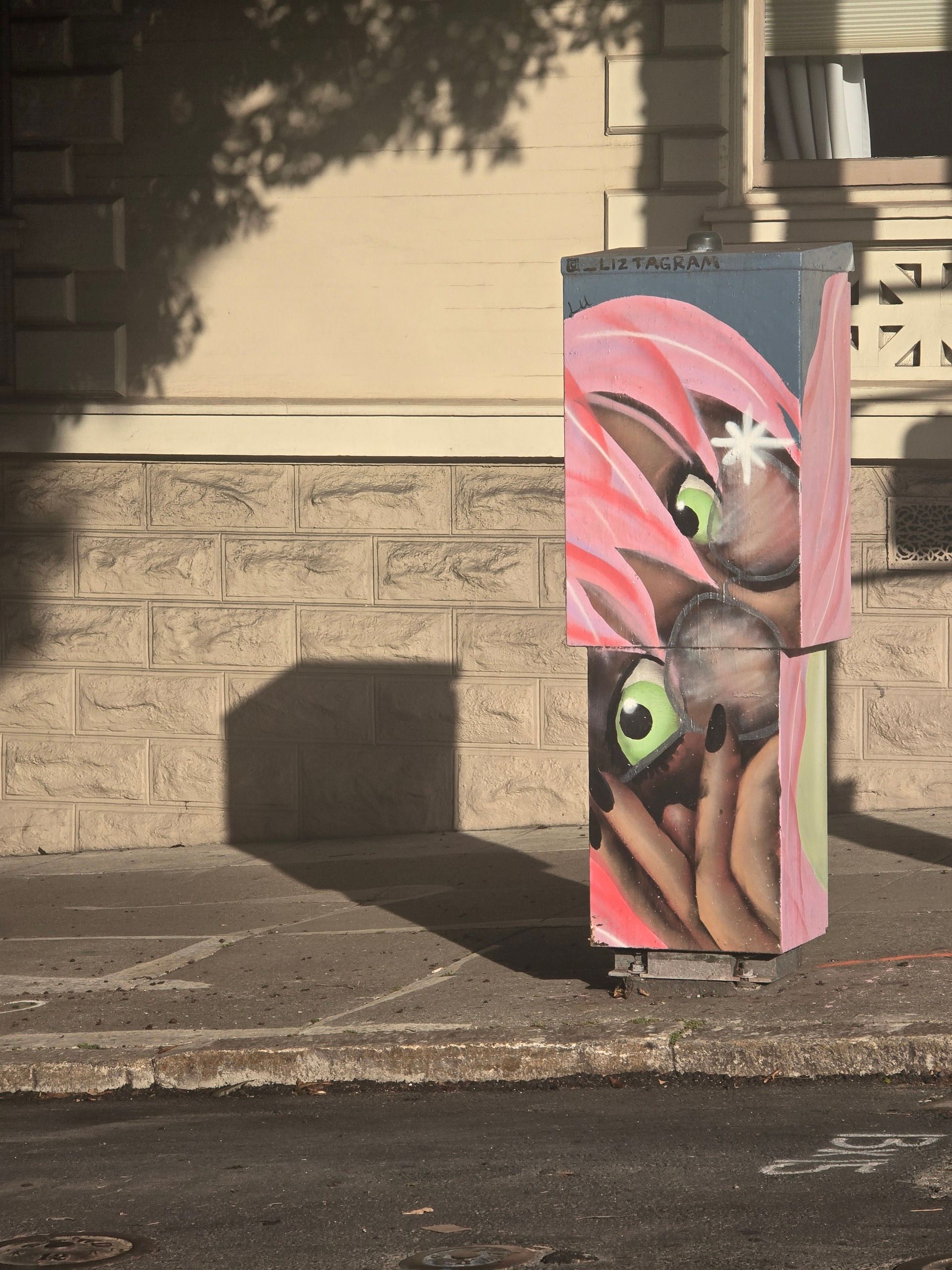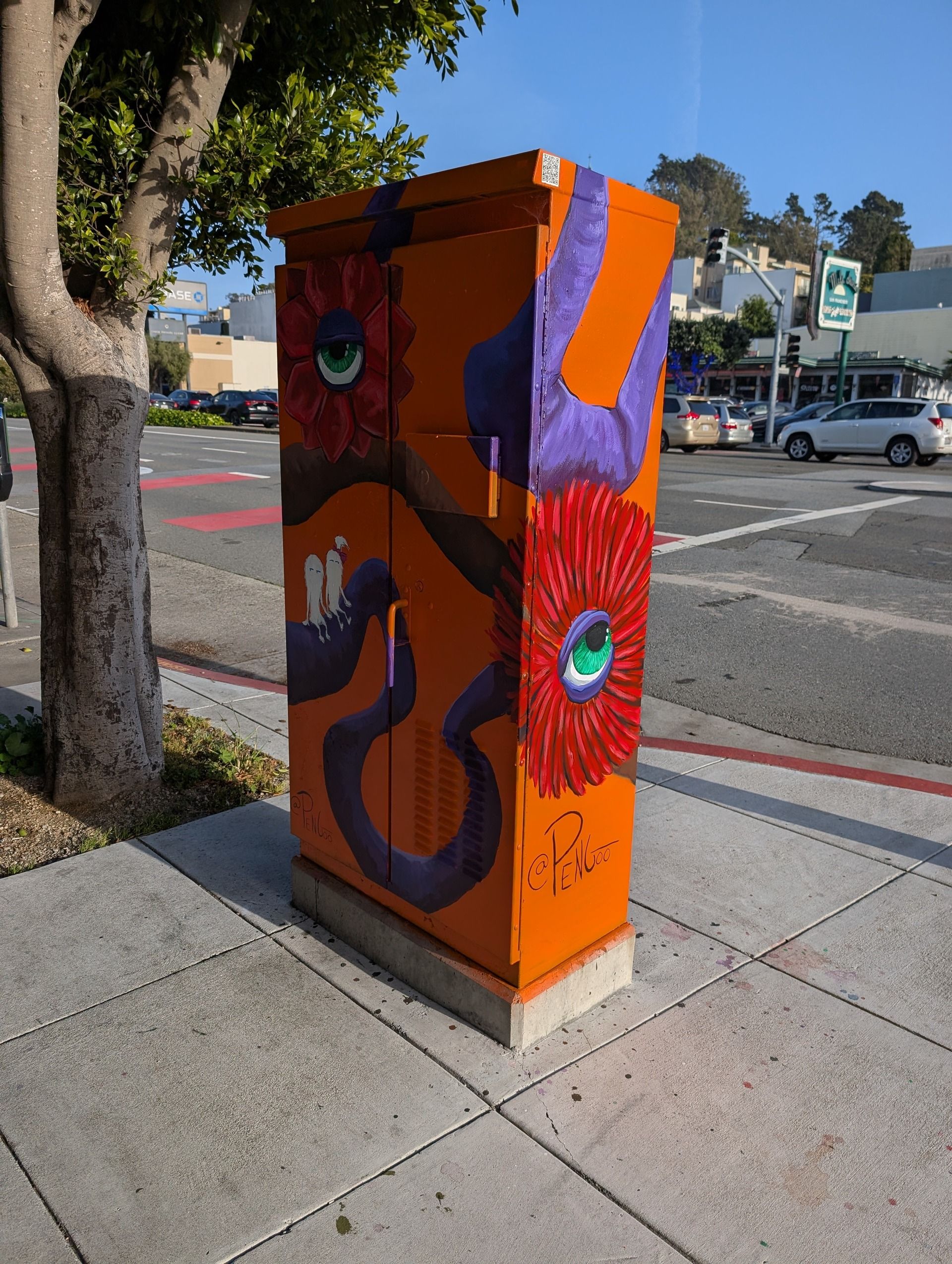 Pengoo is a prolific artist who has painted many of the utility boxes throughout the Richmond District.